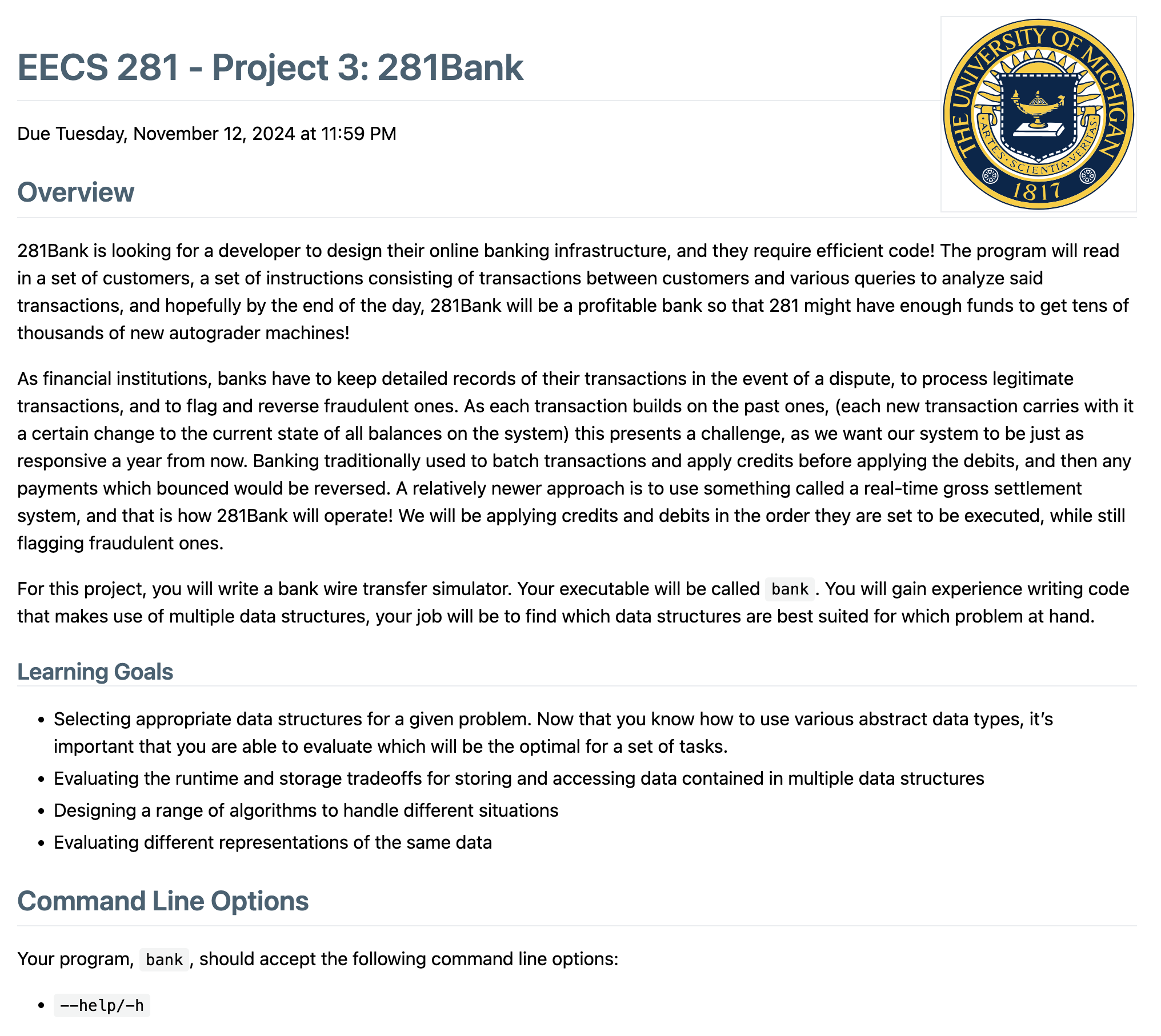 This is a class project for EECS 281. A bank wire transfer simulator. The project used multiple data structures,