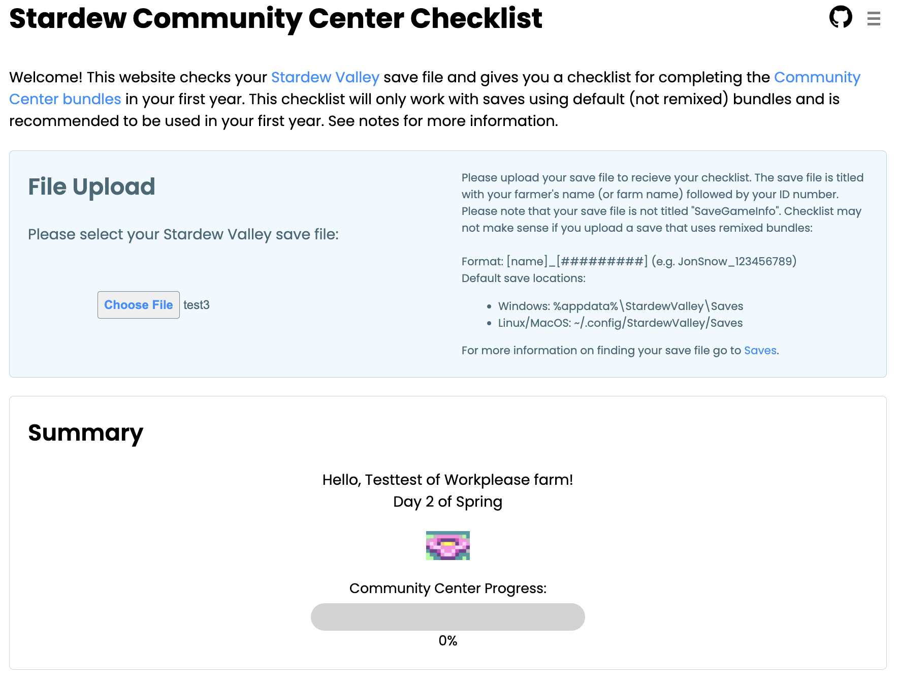 This is a personal project. Stardew Checklist app parses a Stardew Valley XML save file
