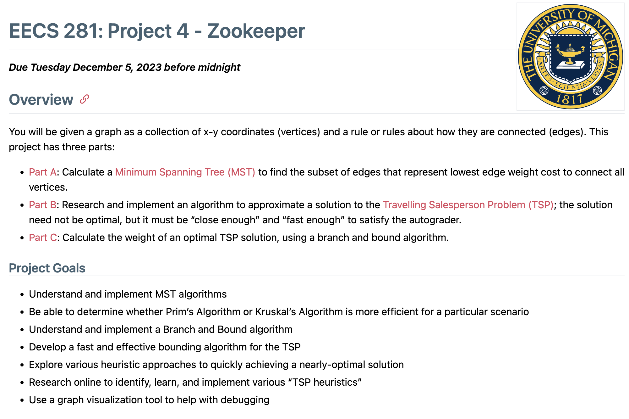 Kruskal's Algorithm and was graded on correctness and efficiency.